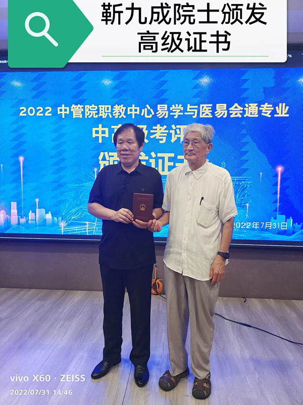 关绍灵老师荣获2022中管院职教中心易学与医易会通专业高级证书。