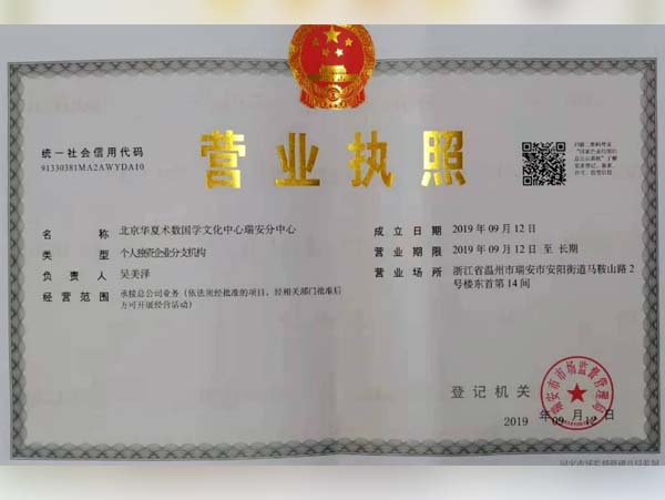 瑞安分中心营业执照